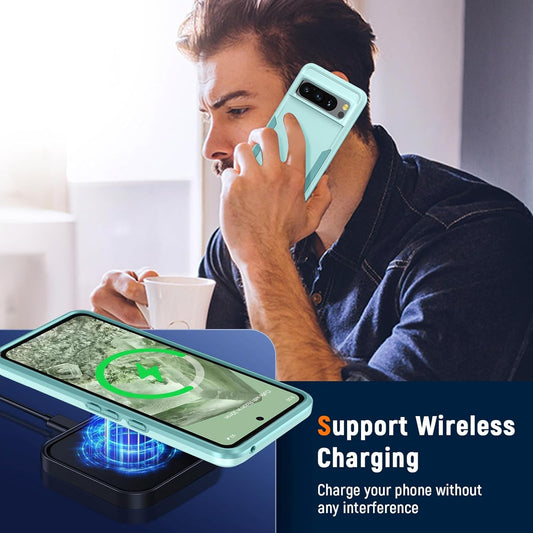 TUDIA Mergegrip Designed for Google Pixel 8 Pro Case 2023, [Magsafe Compatible] Military Grade Slim Dual Layer Heavy Duty Raised Edge Protection Non-Slip Protective Phone Case Cover - Green Lily
