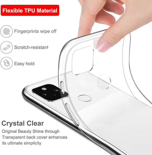 Google Pixel 5 Case Crystal Clear Slim Thin Soft Silicone Shockproof Protective TPU Bumper Thin Cover for Pixel 5 (2020) 6" - Clear