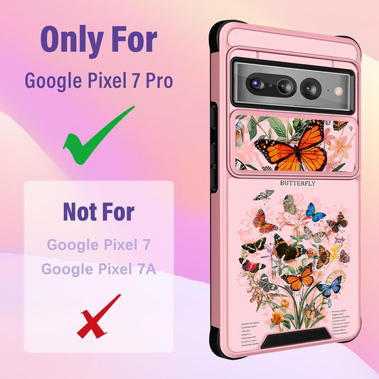 Funermei (2In1 for Google Pixel 7 Pro Case for Women Cute Butterfly Girls Phone Cover Girly Kawaii Aesthetic Butterfly Design with Camera Cover and Ring Stand Funda for Google Pixel Pro 7 Case