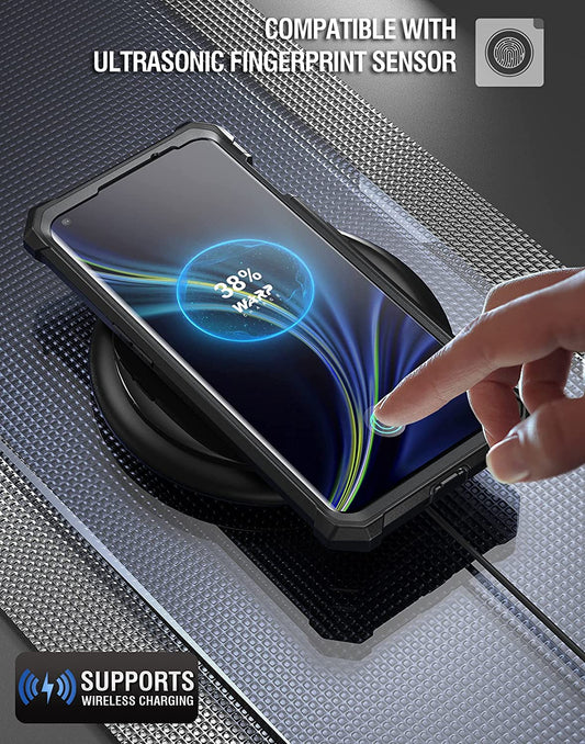 Poetic Guardian Case Designed for Oneplus 10 Pro 5G, Built-In Screen Protector Work with Fingerprint ID, Full Body Hybrid Shockproof Bumper Cover Case, Black/Clear