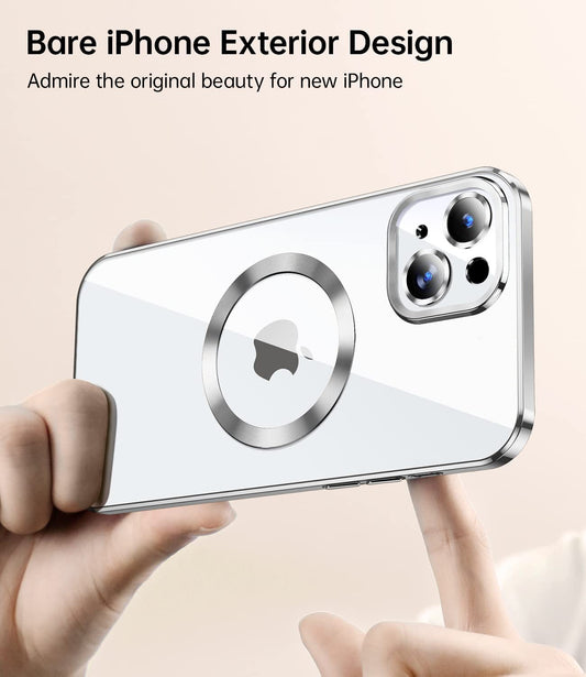 JUESHITUO Magnetic Matallic Glossy Clear for Iphone 14 Case with Full Camera Cover Protection [No.1 Strong N52 Magnets] [Military Grade Drop Protection] for Women Girls Phone Case (6.1")-Silver