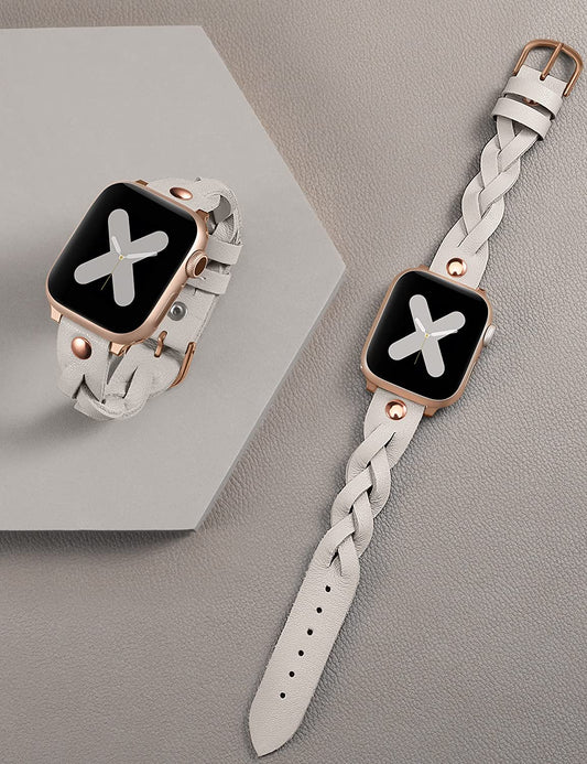 Moolia Braided Leather Strap Compatible with Apple Watch Band 38Mm 40Mm 41Mm 42Mm 44Mm 45Mm 49Mm Women Vintage Thin Replacement Strap Bracelet for Iwatch Series 8/7/6/5/4/3/2/1/SE