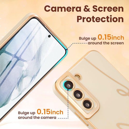 RALEAVO for Samsung Galaxy S21 Case Luxury Plating Case Cover,Cute Love Heart Phone Case,Slim Soft TPU Shockproof Bumper Case with Full Camera Protection,Electroplated Case for Women Girls,White