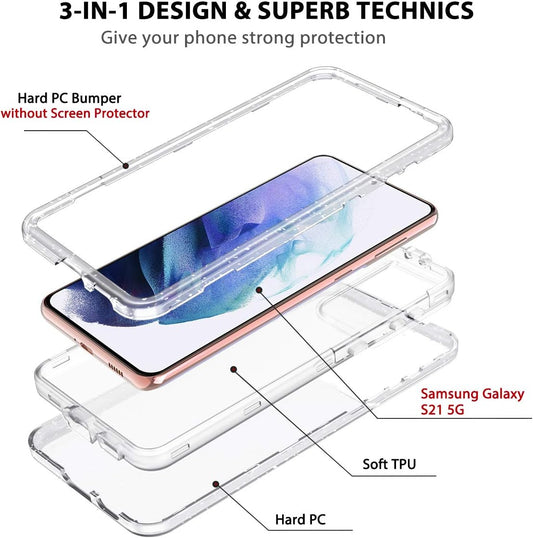 Lamcase for Galaxy S21 5G Case, Crystal Clear Glitter Sparkly Bling Heavy Duty Shockproof Hybrid Three Layer Protective Cover Case for Samsung Galaxy S21 5G 6.2 Inch (2021), Clear/Silver Glitter