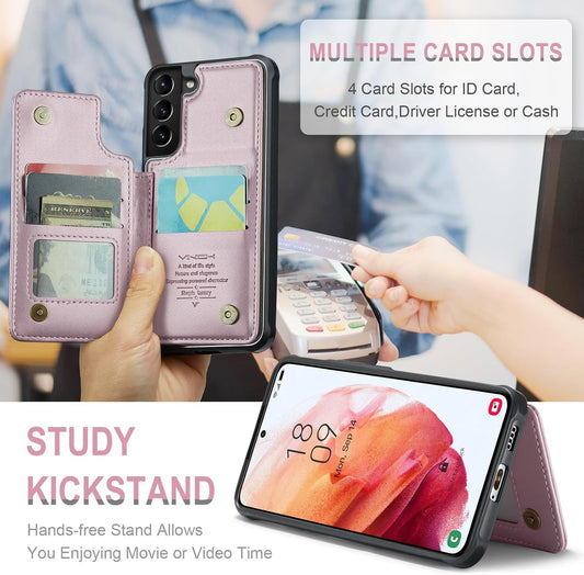 Vinich Samsung Galaxy S21 Case with Card Holder, Samsung S21 Wallet Case for Women Men with RFID Blocking, Durable Leather Kickstand Shockproof Flip Phone Case for Galaxy S21 5G, Rose Gold
