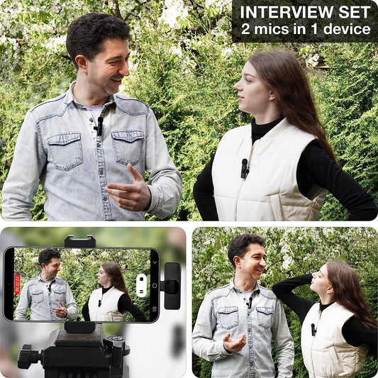 Powerdewise Wireless Lavalier Microphone for Android Phones USB Type C, Ipad Macbook, Noise Cancelling Cordless Microphones Plug&Play Mini Mic Lapel Microphone Clip on Wireless Mic for Android 2 Pack