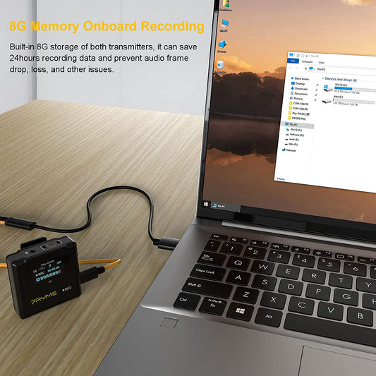 7RYMS 8G Onboard Recording Wireless-Lavalier-Microphone System Iray DW30 2.4G Dual-Channel Wireless Lapel Mic with Charging Case for Camera, Phone, Iphone, Computer, for Vlogging, Filming, Streaming
