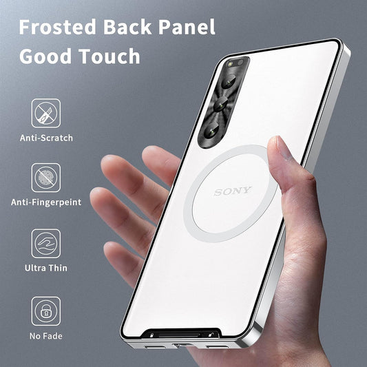 Tffozssi Case for Sony Xperia 5 IV, Compatible with Magsafe Magnetic Adsorption Metal Bumper Back Translucent Matte PC Cover for Sony Xperia 5 Iv,Silver