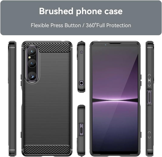 KOARWVC Phone Case for Xperia 1 V Case, Sony 1 V Case Carbon Fiber Shockproof Rugged Shield Anti-Scratch Soft TPU Back Cover Cases for Sony Xperia 1 V (Black)