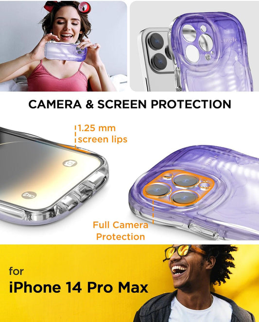 Aicase Iphone 14 Pro Max Case Curly Wave Frame Cute Design with Full Camera Lens Protection,Aesthetic Kawaii Slim TPU Bumper Luxury Plated Shockproof Protective Transparent for Women Girls Men_5
