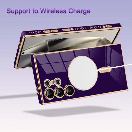 AIGOMARA Magnetic Case for Samsung Galaxy S24 Ultra [Compatible with Magsafe] Heart Design Soft TPU Electroplated Cover Anti-Scratch Shockproof Case for Galaxy S24 Ultra 6.8 Inch - Purple