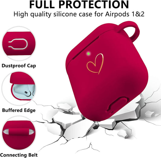AIIEKZ Compatible with Airpods Case Cover, Soft Silicone Case with Gold Heart Pattern for Airpods 2&1 Generation Case with Vintage Roses Pearl Keychain for Girls Women (Burgundy)