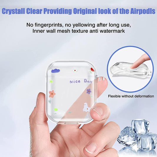 AIIEKZ Compatible with Airpods Case Cover, Kawaii Clear Soft TPU Case with Cute Pendant Keychain for Airpods 1&2 Generation Case for Girls Women (Pink Flower)