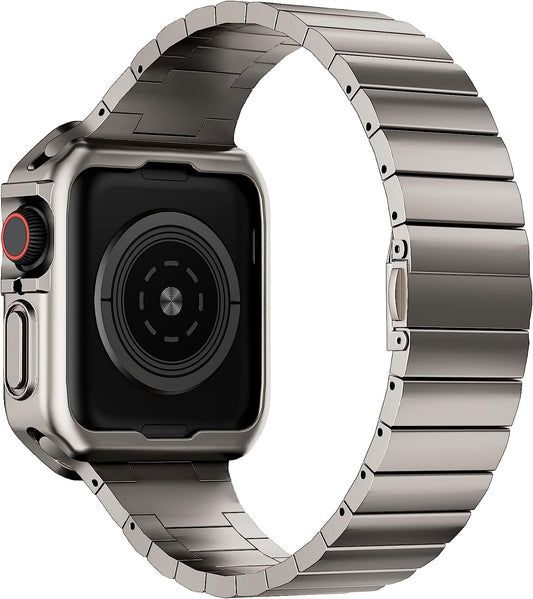 Titanium Color Designed for Apple Watch Band Men with Case, Stainless Steel Metal Chain with TPU Cover, Smart-Watch Link Bracelet Strap, Wrist-Band for I-Watch Series 8 7 6 5 4 3 2 1 SE