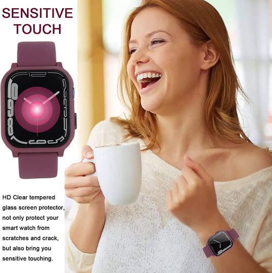 3 in 1 for Apple Watch Band with Case Built-In Screen Protector,Smartwatch Silicone Men Women Sport Wrist Strap & PC Hard Bumper Cover & Tempered Glass Screen Protector for Iwatch SE Series 8 7 6 5 4