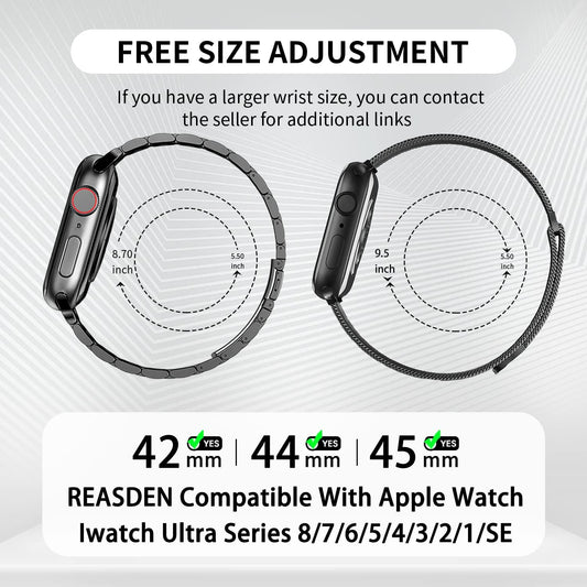 REASDEN Compatible with Apple Watch Band Iwatch Ultra Series 8/7/6/5/4/3/2/1/SE, 38/40/41/42/44/45/49Mm, Solid Stainless Steel Band Metal Business Band Man Women