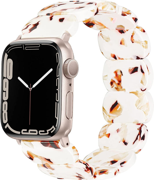Heesch Upgraded Stretchy Resin Watch Band Compatible with Apple Watch for Women, Men, Tortoise Shell Fashion Watch Strap Bracelet Wristband Jewelry for Iwatch Series Ultra/Se/8/7/6/5/4/3/2/1, 38/40/41Mm, 42/44/45/49Mm, Rectangle Version
