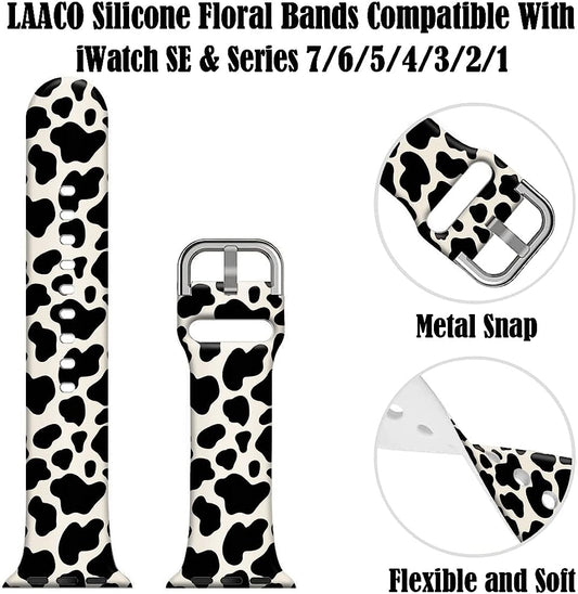 LAACO Silicone Sport Bands Compatible with Apple Watch 49Mm 45Mm 44Mm 42Mm 41Mm 40Mm 38Mm for Women Men Girls, Floral Design Replacment Strap for Iwatch SE Utral/Series 8/7/6/5/4/3/2/1