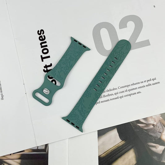 Lyfatz Flower Engraved Bands Compatible with Apple Watch Band 38Mm 40Mm 41Mm 42Mm 44Mm 45Mm 49Mm Women,Floral Laser Soft Silicone Waterproof Sport Band Replacement Wristbands for Iwatch Series 8 7 6 5 4 3 2 1 SE Ultra