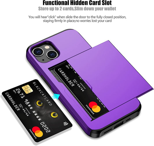 Nvollnoe for Iphone 14 Case with Card Holder Heavy Duty Protective Dual Layer Shockproof Hidden Card Slot Slim Wallet Case for Iphone 14 for Women&Men(Purple)