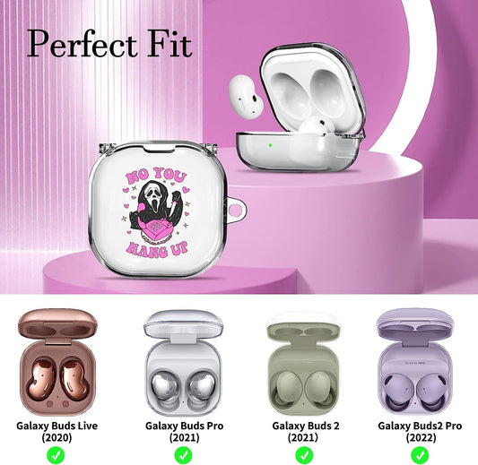 TOLUOHU Scream Ghost Case for Samsung Galaxy Buds2 Pro(2022)/Galaxy Buds Live(2020)/Galaxy Buds Pro(2021)/Galaxy Buds 2(2022) Case, Clear Hard Pc Shockproof Protective Cover with Keychain/Lanyard