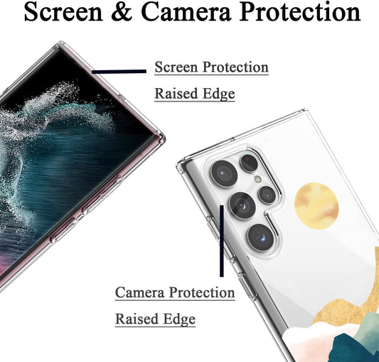 Unov Case Compatible with Galaxy S22 Ultra Case Clear with Design Soft TPU Shock Absorption Slim Embossed Pattern Protective 6.8 Inch (Sierra Mountains)