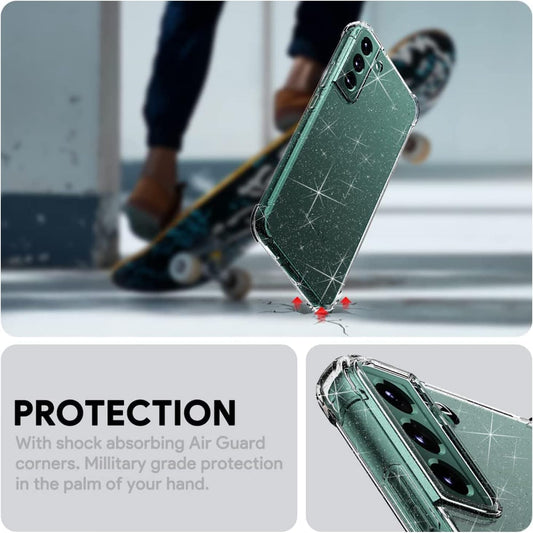 KIOMY Galaxy S22 5G Glitter Case for Girl Women Shockproof Bumper Protective Clear Cell Phone Back Cover with 4 Corners for Samsung Galaxy S22 5G Sparkle Shiny Slim Fit Flexible Luxury Sparkly