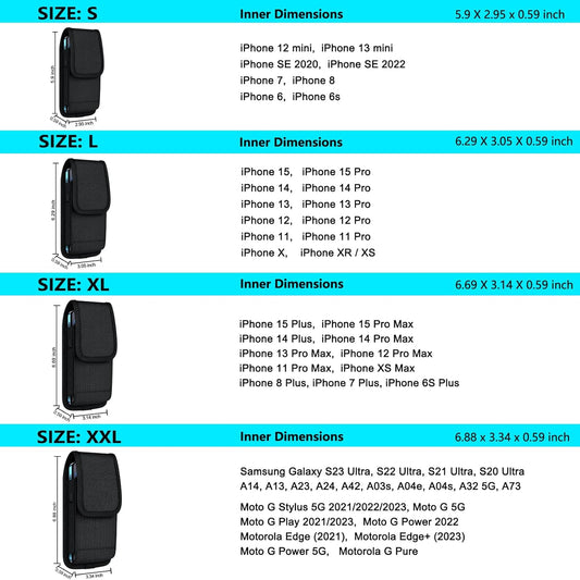 Ykooe Cell Phone Pouch Nylon Belt Holster Case Compatible with Iphone 15, 15 Pro, 14 Pro, 14, 12, 12 Pro, 11, 11 Pro, 13, 13 Pro, XR, Samsung Galaxy S20 S21 S22 S23 S10 S9, Black – L