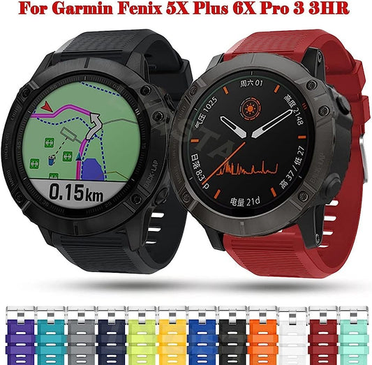 KOSSMA 26Mm Width Outdoor Sport Silicone Replacement Watch Strap for Garmin Fenix 5X plus 6X Pro 3 HR Band Wristband Watchband Bracelet