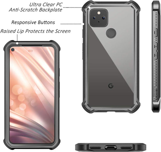 Dexnor for Google Pixel 5 Case with Screen Protector Clear Rugged Full Body 360 Protective Shockproof Hard Back Cover Defender Dual Layer Heavy Duty Bumper Case for Google Pixel 5 - Black