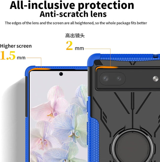 Military Case for Google Pixel 6A 5G 2022 Tough Rugged Dual Layer Case Hybrid Cover with 360°Ring Holder Kickstand for Google Pixel 6A 5G 2022