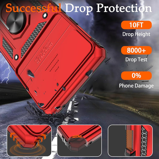 Ibaove for Google Pixel 6 Case, Pixel 6 Case with 2 Pcs HD Screen Protector and Slide Camera Cover, Military Protection Shockproof with Ring Kickstand Case for Google Pixel 6, Red