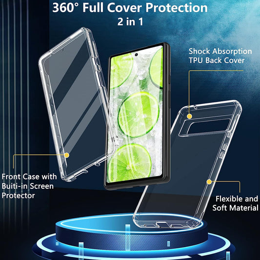 BESINPO for Google Pixel 6A Case,Pixel 6A Case Clear [Built-In Screen Protector ] Dual Layer Full Body Transparent Rugged Tough Shockproof Slim Fit Case Cover for Google Pixel 6A Phone Case
