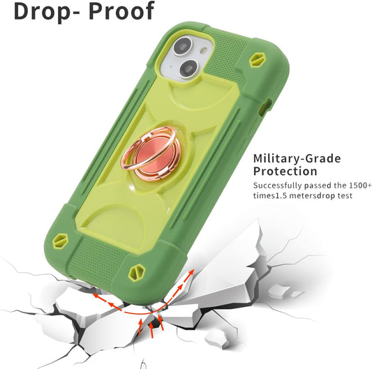 MARKILL Compatible with Iphone 14 plus Case 6.7 Inch with 360 Degree Rotate Ring Stand, Military Grade Drop Protection Full Body Rugged Heavy Duty Protective Cover for Iphone 14 Plus. (Avocado)