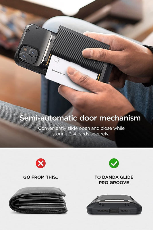 VRS Design Damda Glide Pro Phone Case for Iphone 14 Plus, Sturdy Semi Auto Wallet [4 Cards] Case Compatible for Iphone 14 plus (2022) (Groove Black)