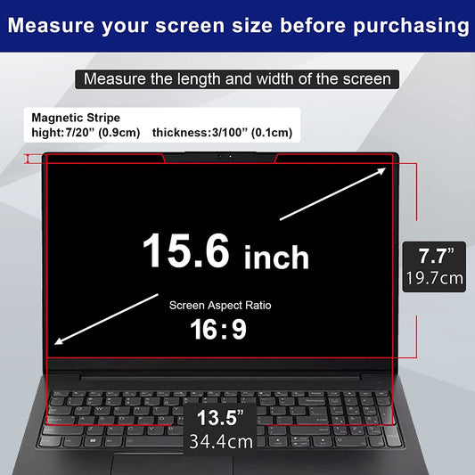 Ymyworld 15.6 Inch Laptop Privacy Screen Filter for 16:9 Widescreen Monitor, Magnetic Installation Reversible Sides and Blue Light Filter