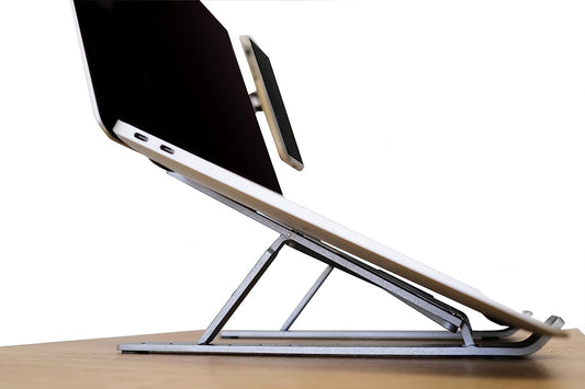 Pack of 2 Aliminum Laptop Stand and Phone Magnetic Portable 7-Level Height Adjustable , Ergonomic Foldable Computer with Phone Holder Compatible with 10-15.6''Laptops and Tablets (Silver) Magnet
