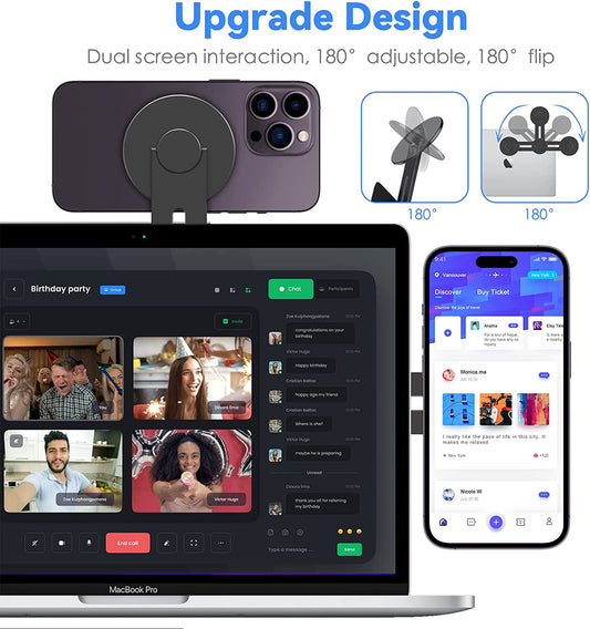 Ciciglow Magnetic Laptop Phone Holder, Adjustable Phone Stand, Laptop and Phone Dual Screen Interaction, for Mobile Phones with Magnetic Guide Such as Ip12 13 14