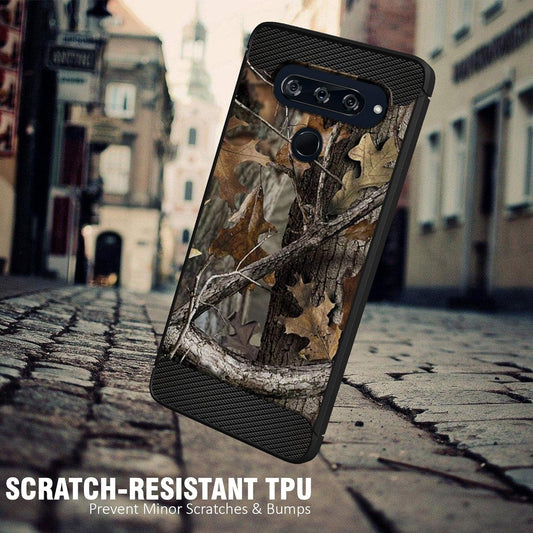 Casesondeck Camo Case Compatible with LG V40 Thinq, Carbon Fiber Texture Slim Fitted Matte Cover with Design(Tree Camo)