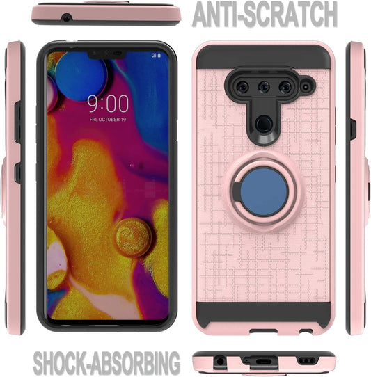 Ayoo Compatible with LG V40 Case,Lg V40 Thinq Case, LG V40 Phone Cases,360 Degree Rotating Ring Stand Fishnet Full Bodystocking Dual Layer Shock-Absorption for LG V40-ZK Rose Gold