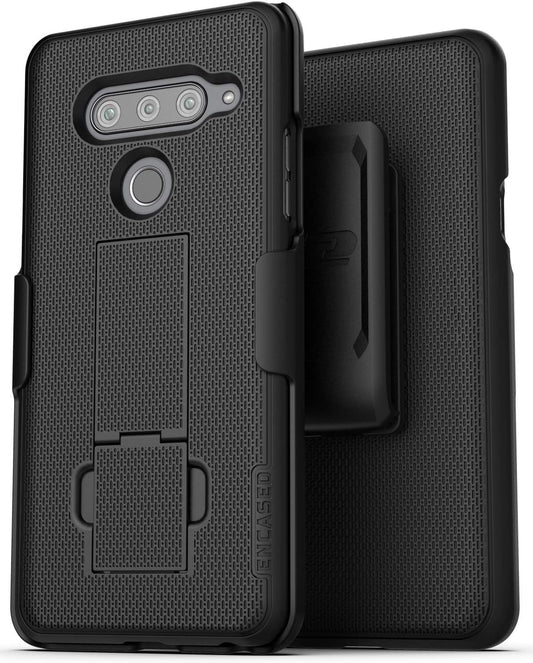 Encased Thin Fit Phone Case for LG V40 Thinq - (Duraclip XC) Holster Shell Combo Belt Clip with Rotating Holster, Black (2018 Release)