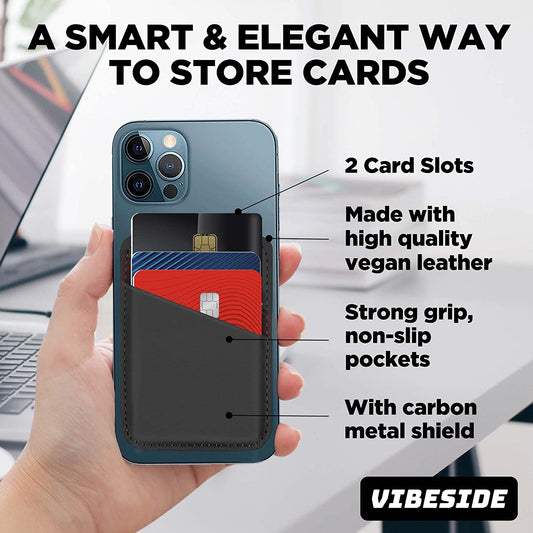 VIBESIDE Magsafe Wallet Compatible with Iphone 14 & Iphone 13 Pro Max – Mag Safe Secure Credit Card Holder – Vegan Leather. Magnetic Card Wallet Holder - Apple Iphone 14,13,12 Compatible Black