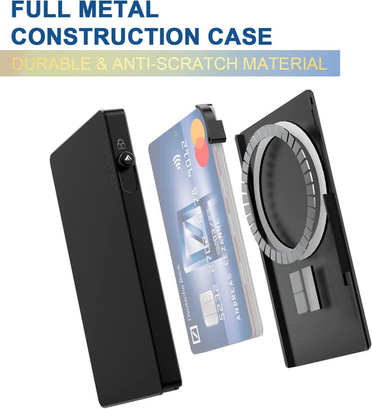 T-MFY Minimalist Credit Card Wallet with Magnetic Ring - Slim Aluminum Wallet - RFID Blocking& Lock Design - Small Card Holder Wallet Compatible with All Type Phone for Men&Women (Black)