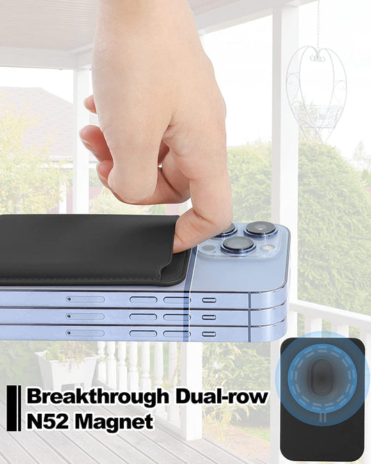 COMWINN Mag Safe Wallet with Double-Row Magnets - Minimalism Leather Mag Safe Card Holder - Slim Magnetic Wallet for Iphone 14/13/12 Series Model and Magsafe Case - Max Fit 3 Cards Black