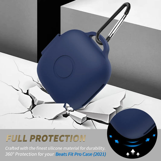 Geiomoo 2 in 1 Silicone Case Compatible with Beats Fit Pro and Air Tag, Protective Cover with Carabiner (Navy Blue)
