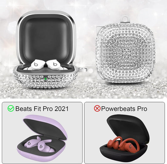 Beats Fit Pro Case Cover, Filoto Bling Crystal PC Beats Fit Pro Case for Women Girls, Cute Apple Beats Fit Pro Earbuds Case with Keychain, Silver