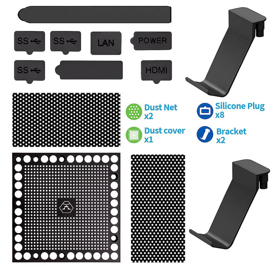 Dust Cover Set for Xbox Series X Console, Dust Filter Covers with 2 Controller Holder Hanger Stand and 8 Dust Plugs Compatible with Xbox Series X