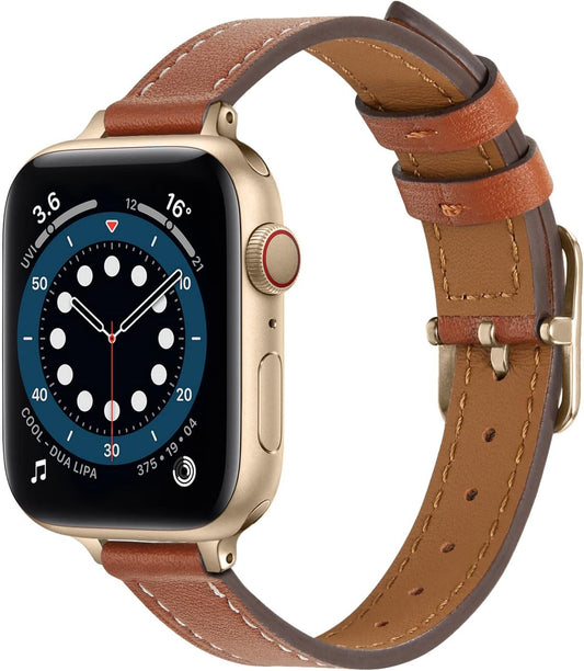 Slim Bands Compatible with Apple Watch Band 38Mm 40Mm 41Mm 42Mm 44Mm 45Mm, Pierre Case Genuine Leather Thin Bands Replacement Strap Compatible with Iwatch Series 7/6/5/4/3/2/1/Se(Brown,38Mm 40Mm 41Mm)