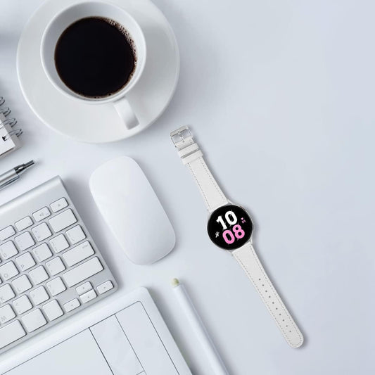 Compatible with Galaxy Watch 3 41Mm Bands/ Galaxy Watch 42Mm Band/Active2 44Mm Band Leather,20Mm Replacement Strap Band Compatible with Samsung Galaxy Watch Active 40Mm /Ticwatch 2 Smartwatch (Leather White)
