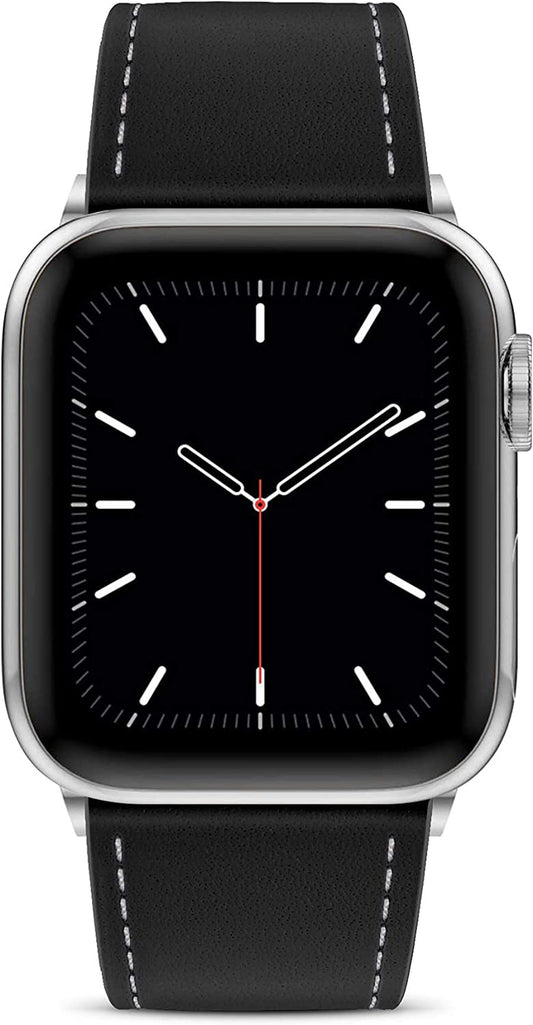 Marge plus Compatible with Apple Watch Band 42Mm 44Mm, Genuine Leather Replacement Band Compatible with Apple Watch SE Series 6 5 4 (44Mm) Series 3 2 1 (42Mm), Black Band/Silver Adapter